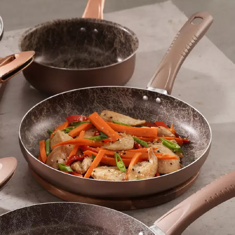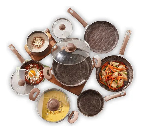 La Batería de Ollas Universal Antiadherente Ámbar de 11 piezas es la elección perfecta para quienes buscan calidad y funcionalidad en la cocina. Fabricada en aluminio, este set garantiza una distribución uniforme del calor, lo que permite una cocción más eficiente y sabrosa de tus platillos favoritos. Su revestimiento antiadherente facilita la preparación de alimentos y la limpieza posterior, haciendo que cocinar sea una experiencia más placentera.