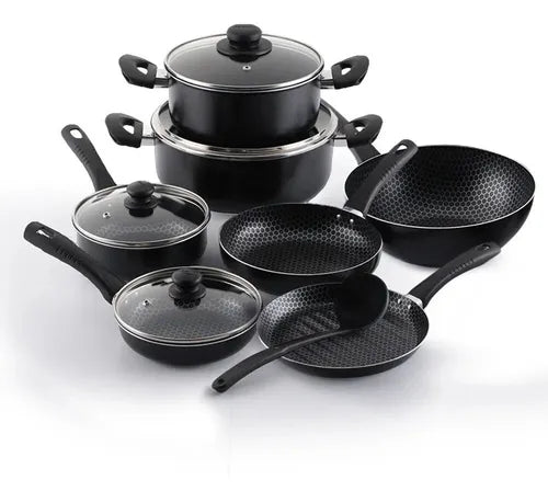 🍳 Batería Universal Ultra 12 Piezas 🍳 ¡Tu cocina lista para todo! Con esta batería antiadherente de 6 capas, los alimentos conservarán su sabor y nutrientes en cada preparación.