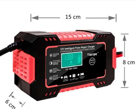 ✅ Compatible con baterías de 4Ah hasta 100Ah ✅ Ideal para autos, motos, cortacésped, SUV, lanchas y más ✅ Función de reparación de batería sulfatada ✅ Pantalla LCD con estado de carga en tiempo real ✅ Protección contra sobrecarga, cortocircuito, temperatura y más