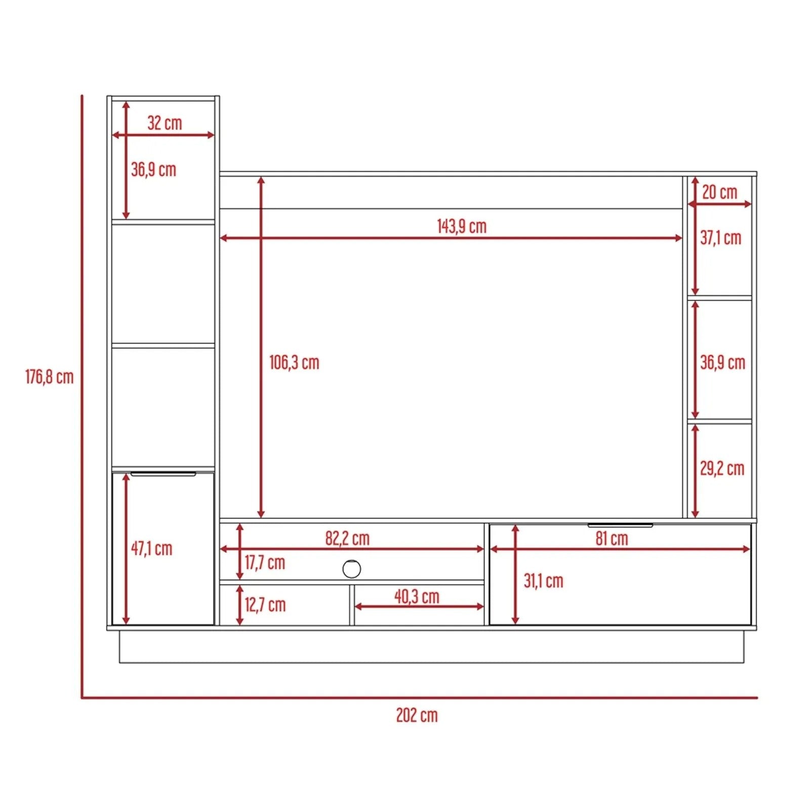 Moderno y funcional, perfecto para darle estilo y orden a tu sala. ✔ Espacio para TV de hasta 60” máx. ✔ Diseño contemporáneo con combinación en tonos gris niebla. ✔ Múltiples entrepaños y superficies para ubicar consolas, parlantes, decoración y más. ✔ Fabricado en madera aglomerada de 15 mm con recubrimiento melamínico, resistente y duradero.