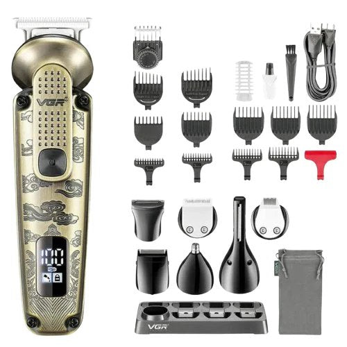 ✨ Versatilidad total con la Afeitadora Multifunción 6 en 1 VGR V-095. Recorta, afeita y perfila con precisión gracias a sus cuchillas de acero, 6 cabezales y 12 peines guía. 🔋 Hasta 180 min de uso, carga rápida en 1.5 horas y pantalla LED para control total. ¡Tu rutina completa en una sola máquina! 💼✂️
