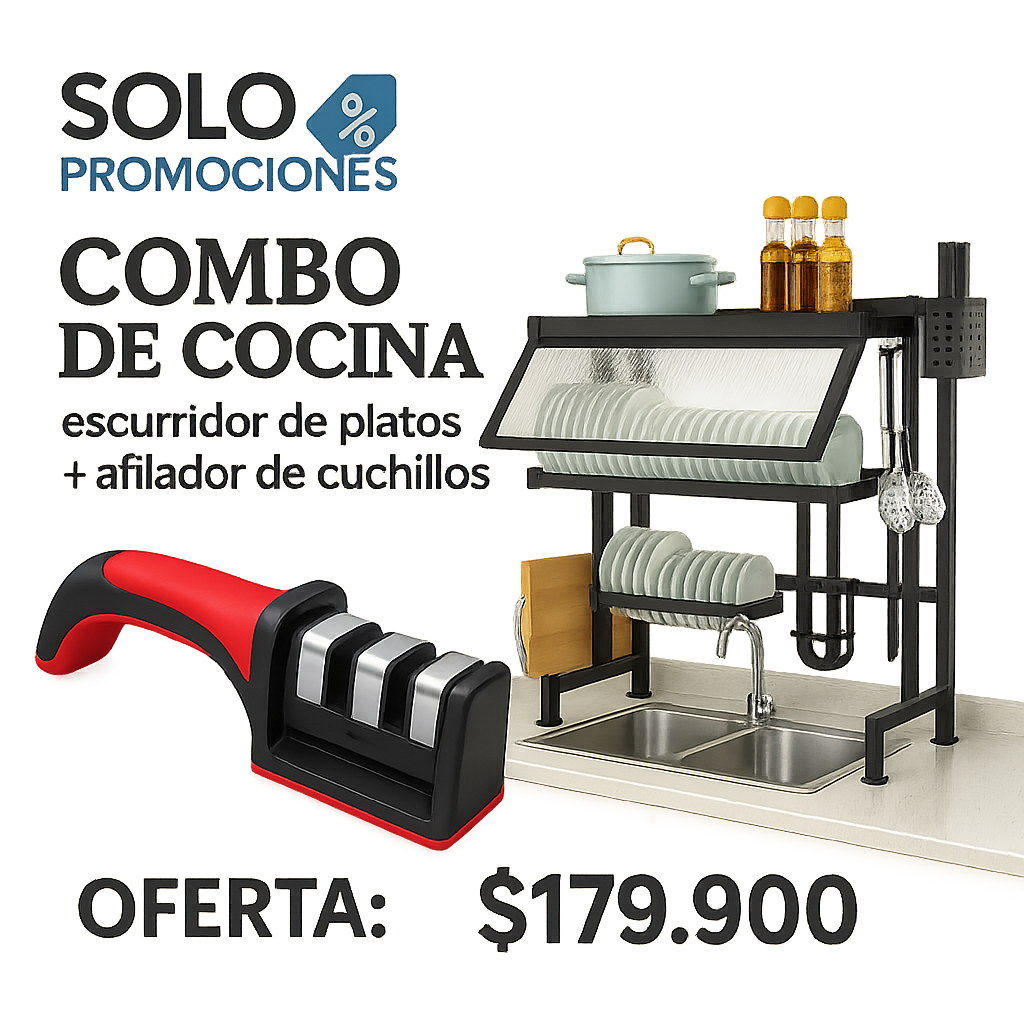 🔵 ¡SUPER COMBO DE COCINA! 🔵 Escurridor multifuncional + Afilador de cuchillos profesional