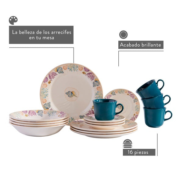Vajilla Corona Bahari 4 puestos 16 piezas: