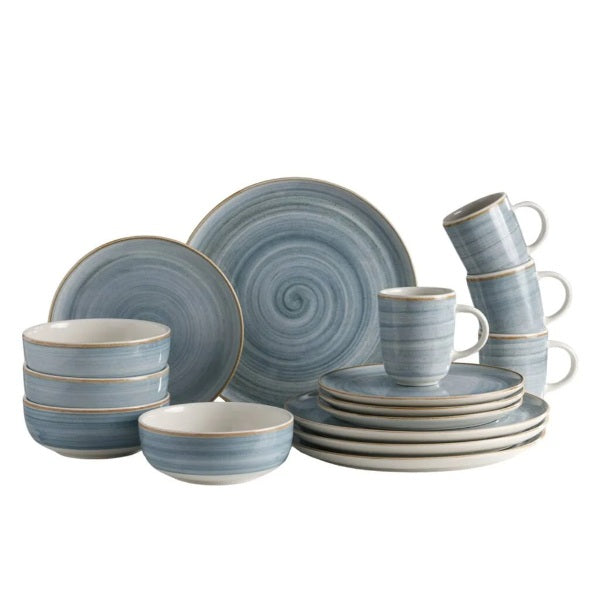 Un juego elegante y completo para 4 personas, con 16 piezas en tonalidad azul profundo y borde caoba que aporta estilo a tu mesa. Fabricada en cerámica de alta calidad, apta para microondas y lavavajillas, diseñada para acompañarte en tu día a día. Añade un toque de sofisticación a tus comidas y transforma tu mesa con esta colección atemporal.